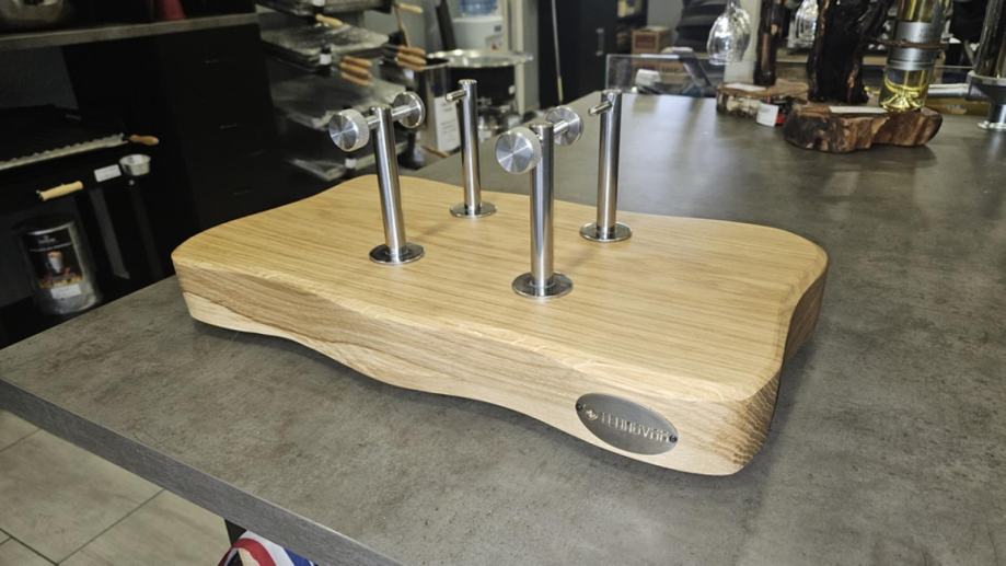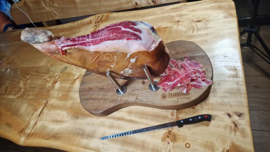 Unikatni stalak za pršut. Tokareni inox stupovi sa sistemom za pričvršćenje pršuta.