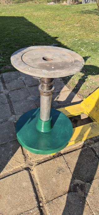 Stalak je metalan osim gornjeg okruglog djela, on je aluminijski. Podesiv je po visini i gornji dio stola se okrece za 360°