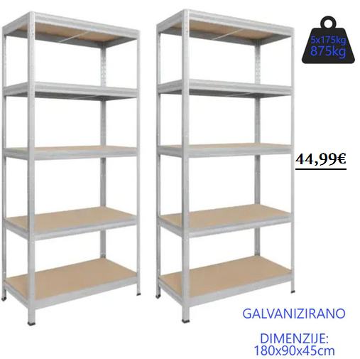 STALAŽA METALNA SA 5 POLICA 180*90*45 / UKUPNA NOSIVOST 875kg / GALVAN