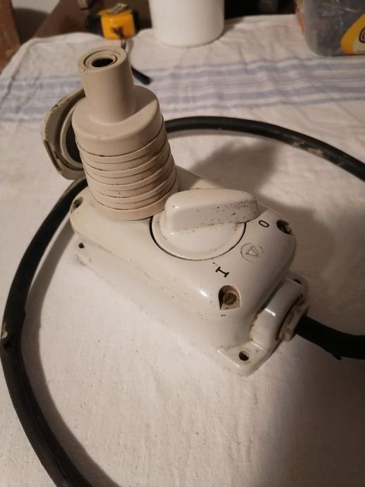 Prodajem prekidač trofazni sa nekog starijeg stroja, mislim da je bio korišten u stolarskoj radioni, kod stolarske kombinirke .
