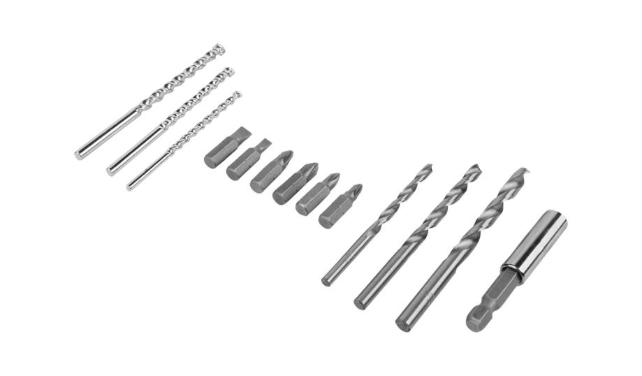Različiti privici: uključeni su za razne zadatke, od vijanja do bušenja.