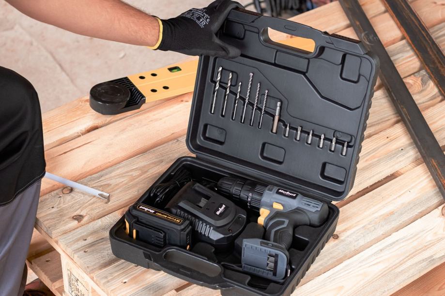 Odvijač ima moćan motor koji postiže moment 30 nm, što daje snažne i točne rezultate čak i u zahtjevnijim zadacima. 2AH litij-ionska baterija omogućuje dugotrajan rad bez potrebe za čestim punjenjem, što znači više zadataka koji se izvršavaju s manje prekida. Komplet uključuje LED svjetiljku koja vam omogućuje rad u slabo osvijetljenim prostorima, što je posebno korisno u dijelovima u kutovima, ormarima ili na otvorenom navečer.