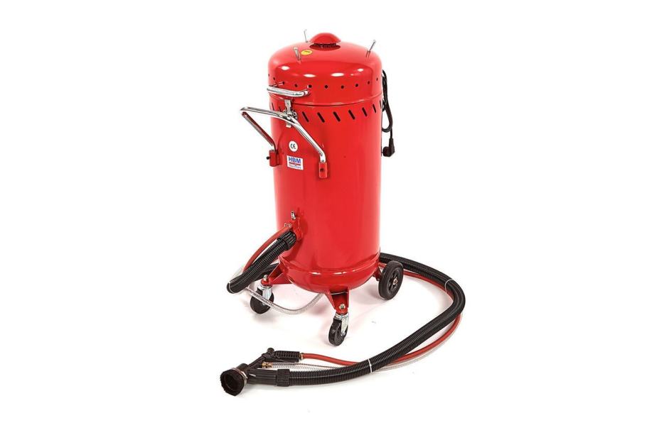vrlo korisno za pjeskarenje na velikim predmetima ili vanjskim objektimaova posuda za pjeskarenje usisava vlastiti abraziv za pjeskarenje i većinu prašineprljavština se odvaja u kotlu i tako se zrno (abraziv) može neprestano koristiti dok se ne potrošiisporučuje se s mikrofilteromTehnički opis:veličina spremnika 80 litaradužina crijeva 2,5 mradni tlak od 5 bara do 8 barapotrošnja zraka Pribl. 250 - 600 L / mindimenzije pakiranja 102 x 46 x 51,5 cmtežina oko 36 kg]]>
