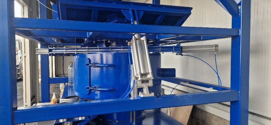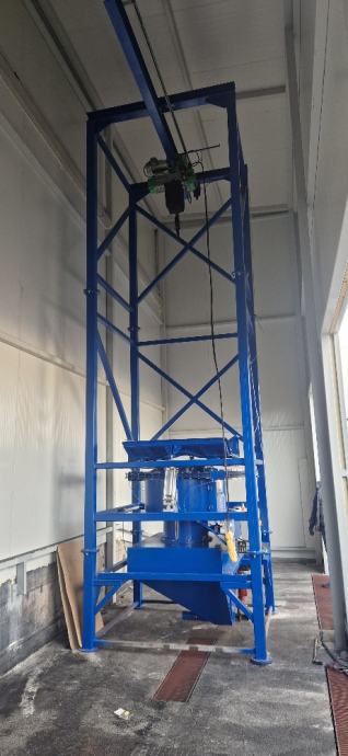 Stroj za ručno i automatsko pražnjenje BIG BAG vreča sa sistemom za transport materijala, upravljan PLC-om,prilagođavamo prema potrebe kupca.