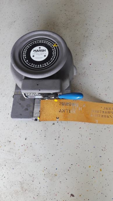 Prodajem probijač za probijanje slova i brojeva. Predvidjeno za sva pakovanja i napise. Marke MARSH - vrlo dobro stanje - skoro novo!!! Ima preko 200-300 ploca za probijanje na plati se napise zeljena reklama ili broj prenesete na odredjenu povrsinu prefarba se bojom ili sprejom