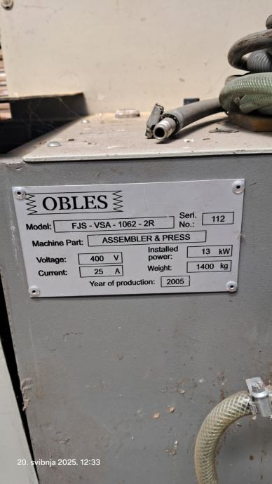 3. Linija za spajanje drvenih elemenata "Obles"tip:FJS-VSA-1062-2R,godina proizvodnje 2005