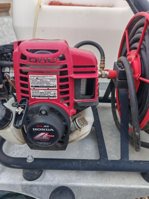 250 litara, honda benzin motor, max pritisak cca 10 bara...