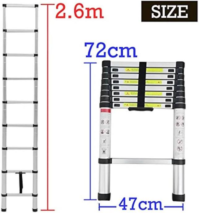 Jednostavan za spremanje i prijenosan: lagan i kompaktan, neto težina cca. 7 kg, lako se prenosi i sprema; remen za zaključavanje čvrsto učvršćuje ljestve i lako ih je nositi;