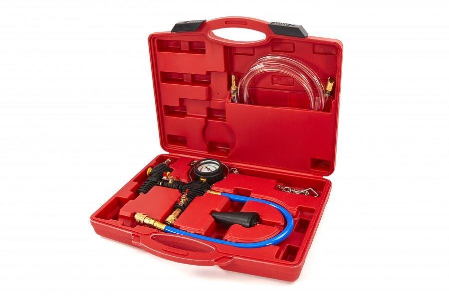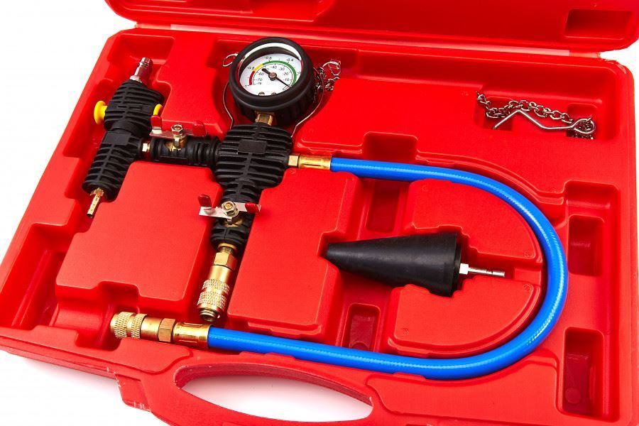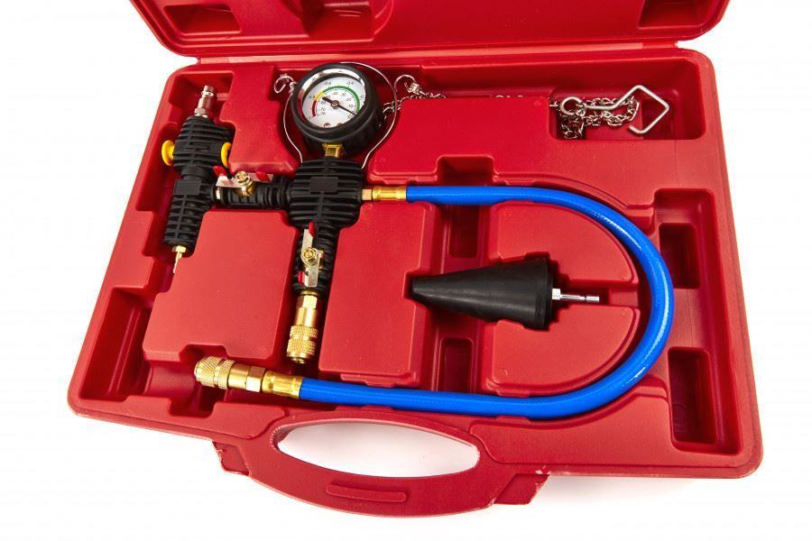 univerzalni dizajn s brzim otpuštanjem pogodan za gotovo sva vozilauključuje fleksibilno crijevo s priključcima za rad u skučenim prostorimaopremljen posebnim ventilom kroz koji se tlak zadržava unutar rashladnog sustavamanometar s gumenim kućištem za zaštitu]]>
