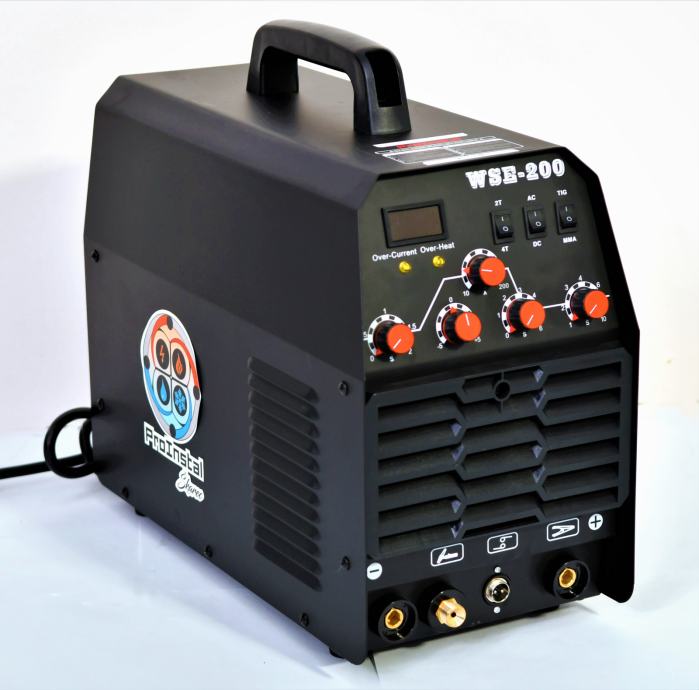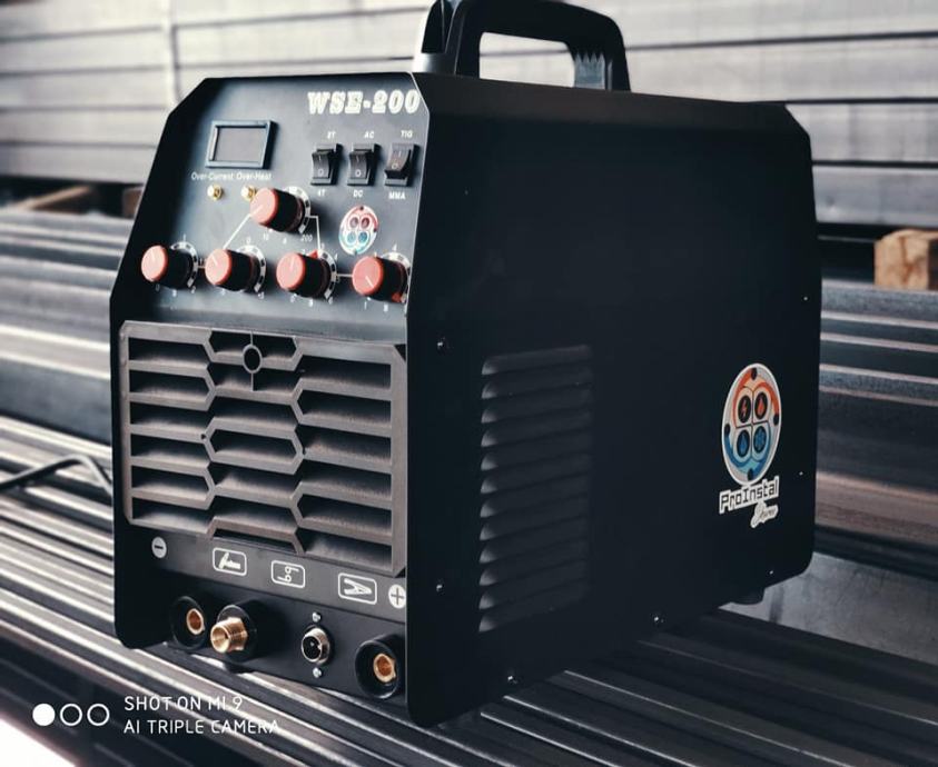 Aparat za zavarivanje PROINSTAL TIG MMA WSE 200 je inverterski aparat za zavarivanje MMA ili TIG postupkom. Aparat nudi mogućnost rada na AC struji ili DC struji radi čega su moguća zavarivanja svih vrsta materijala. Zavarivanje na DC struji omogućava varenje svih vrsta legiranih i nelegiranih čelika, a na AC struji omogućava varenje obojenih metala kao što su aluminij, mesing, bronca, itd. Moguće reguliranje početnog i završnog plina , radne i završne struje te balansa polariteta AC stuje. Aparat ima mogućnost rada na 2T modu ili 4T modu.