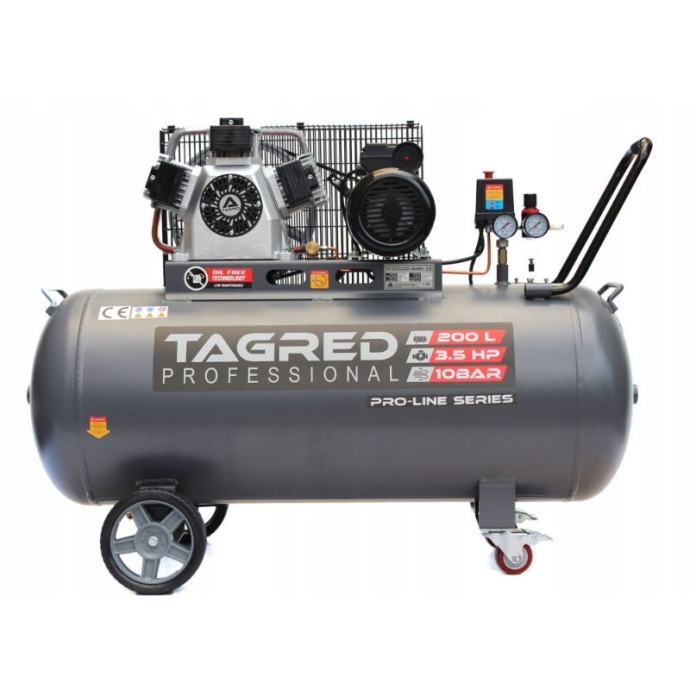 Napomena:Fotografije su informativnog karaktera. Artikl NE uključuje brzu spojku, crijevo ni separator, ali ih je moguće naknadno kupiti.Tehnički opis: ekstremne performanse i snagavisoka kultura rada, udobnost i praktičnost korištenjatihi rad3-klipne - pumpe sastavljene od klipnjače, teflonskog prstena, cilindra i ploče ventila; ovaj dizajn jamči rad kompresora gotovo bez potrebe za održavanjemojačani klipovi i klipni prstenovi s niskim trenjem izrađeni od visokokvalitetnih materijalamoderan elektromotor koji sprječava vibracije uređaja - ekscentrični kotači s ležajevima i klipnjačom postavljeni su simetrično direktno na rotoropremljen s dva jasna mjerača tlakajedan od njih je u kombinaciji s reduktorom i odvajačem pareergonomski - ima reduktor tlaka opremljen inovativnim mehanizmom za regulaciju, veliki manometar koji se nalazi na kompresoru u položaju koji olakšava očitavanje parametara te odvodnu slavinu koja je jednostavna za korištenjeekonomičan - zahvaljujući modernom dizajnu, učinkovitiji je i troši puno manje električne energije u usporedbi s uljnim kompresorimakompresor ne zahtijeva servisiranje uljem i nije opremljen elementima kao što su: klipnjače, čahure, teške remenice, ventilatori, klinasti remeni, odzračivač komore i razrjeđivači naprezanja, što čini kompresor lakšim, manje vibrira i ne zahtijeva dodatne troškovimobilni - lagan je, ima kotače i udobnu ručku, što ga čini vrlo lakim za kretanjeizdržljiva, metalna transportna ručka s gumiranom završnom obradom koja ne klizitih kompresor bez ulja - profesionalni izvor čistog zraka bez uljapouzdana i tiha pumpa može se uspješno postaviti u ured, radnu sobu ili pokraj stroja bez pogoršanja nelagode uzrokovane bučnim radomglave su opremljene zračnim filtrom s učinkovitim sustavom ventilacije - ovo rješenje omogućuje postizanje maksimalne učinkovitosti s relativno malim kompresorom i odvojenim sigurnosnim ventilimau ponuđenom kompresoru nema potrebe za provjerom razine ulja, zamjenom ulja ili dotezanjem glavanamijenjeno za hobi upotrebuTehnički podaci:maksimalna snaga motora: 3,5 KW / 4,8 KSradni pritisak: 10 barabroj klipova: 3kapacitet rezervoara: 200 litaranajveća brzina motora: 2850 o/minefektivni kapacitet pri 1 baru: 911 L/minefektivni kapacitet pri 4 bara: 675 L/minefektivni kapacitet pri 8 bara: 450 L/minmreža: 230 V ~ / 50 Hzduljina: 108 cmširina: 41 cm]]>