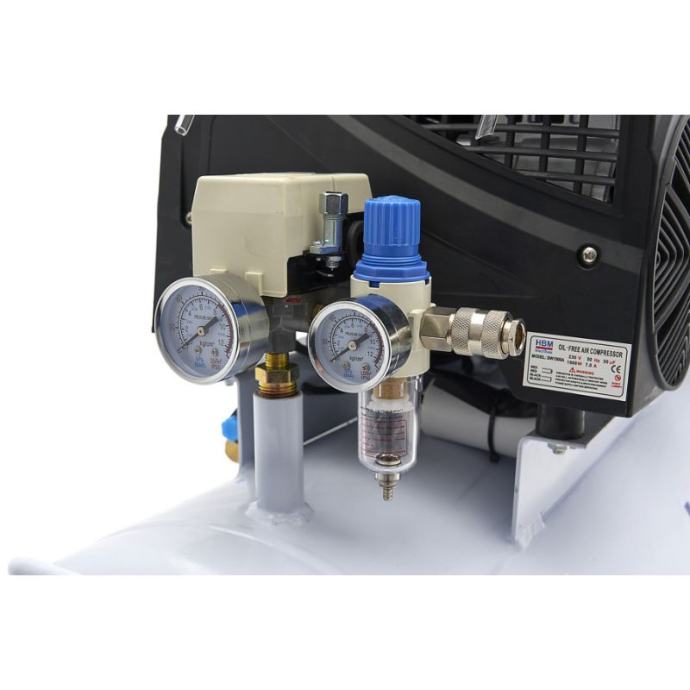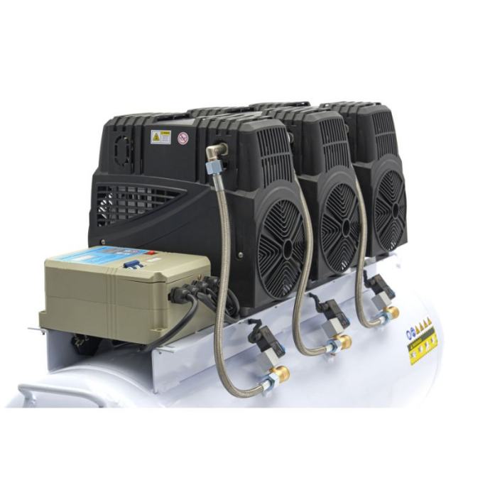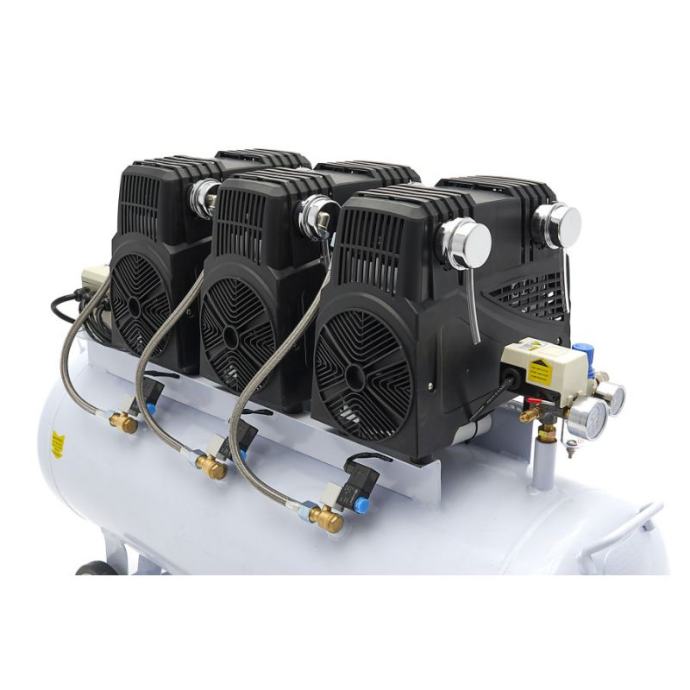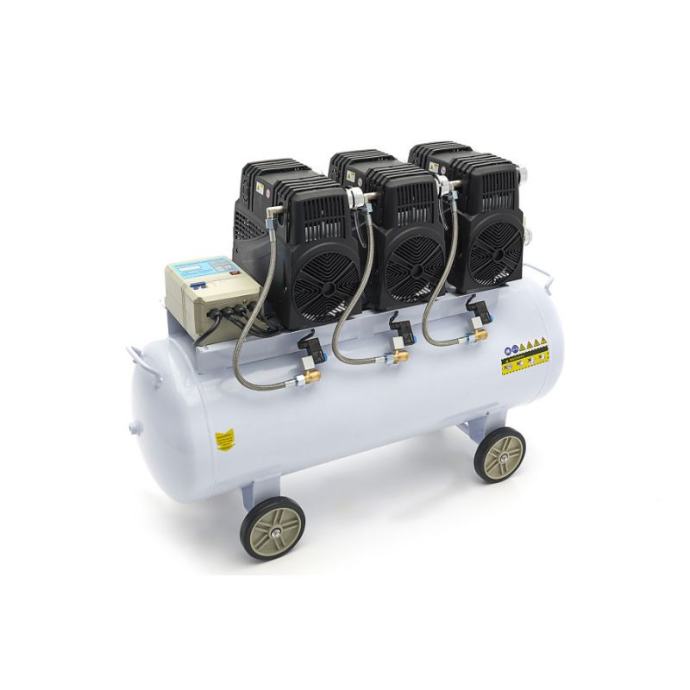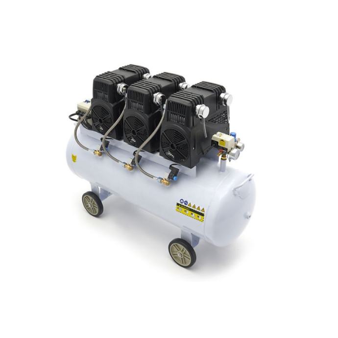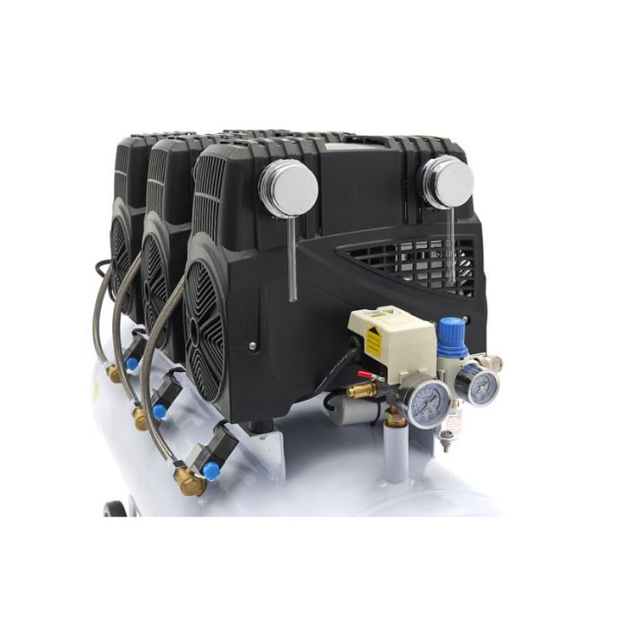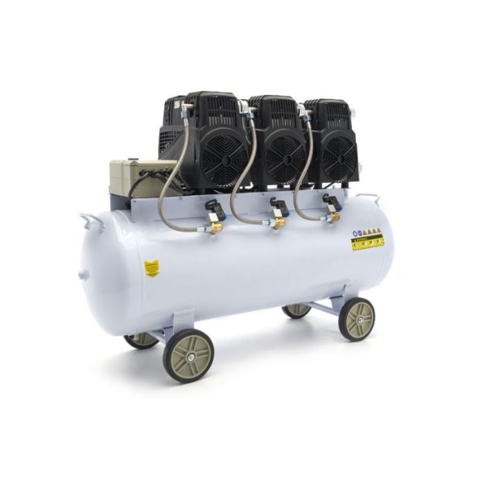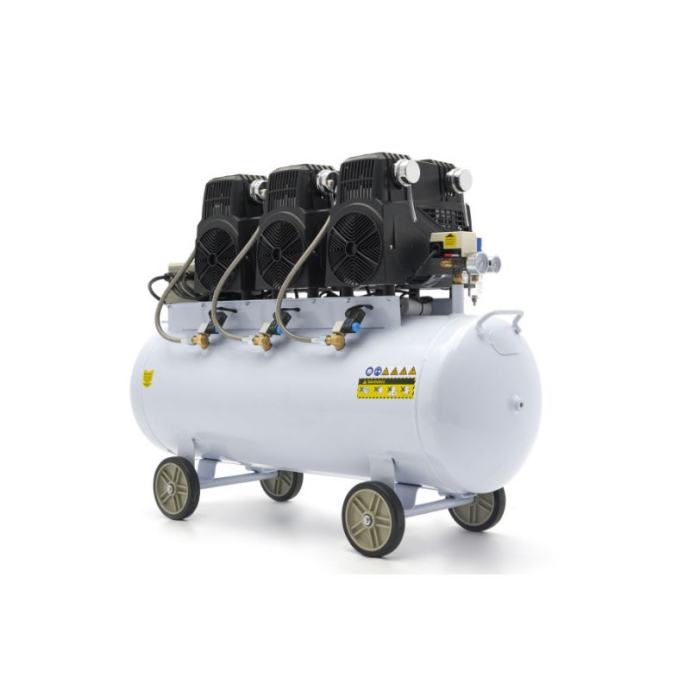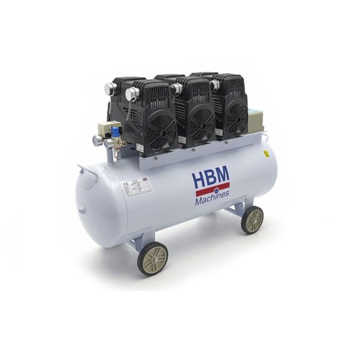 kompresor dolazi s sigurnosnim ventilomventil za smanjenje tlaka s manometrom i spojnicomdrenažni ventil na spremnikuodvajač vlagemobilnimotor bez ulja i održavanjavrlo tihi rad, cca. 70 db !!pogodno za unutarnju upotrebu Tehnički opis: kapacitet spremnika 150litaramaksimalni tlak u spremniku 10 barmaksimalni radni tlak 8 barsnaga motora 3900 w / 1 ksbroj cilindara 6napon 230 Vrazina buke približno 60 db (a)bruto izlaz zraka 600 litara / minutineto izlaz zraka 450 litara / minutidimenzije ambalaže 135 x 45 x 92 cmtežina 128 kg]]>