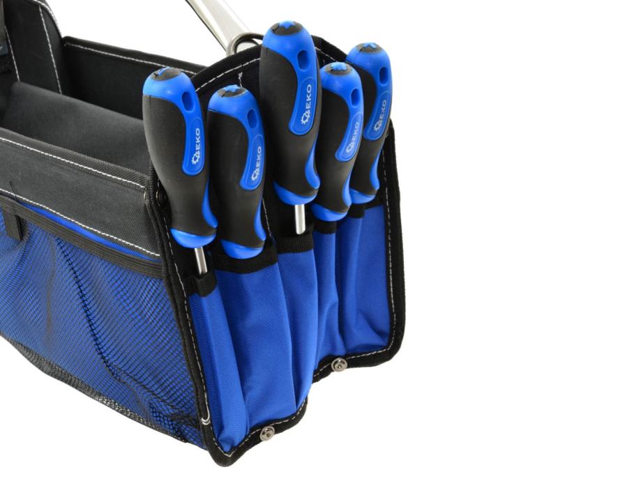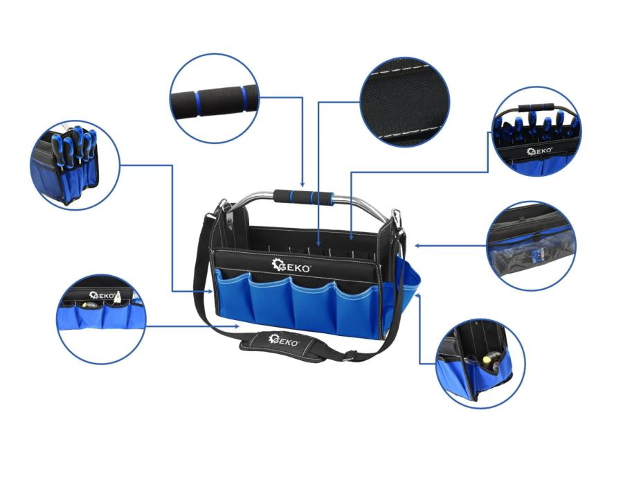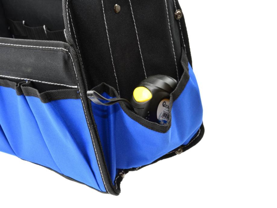 Sa svojih 11 unutarnjih i 7 vanjskih džepova, ova torba olakšava organiziranje i pristup vašem alatu. Unutarnji džepovi idealni su za skladištenje manjih alata kao što su odvijači, kliješta, ključevi i slično, dok su vanjski džepovi prikladni za veće alate poput čekića, kliješta i slično. To vam omogućuje da sve svoje alate imate na dohvat ruke bez nepotrebnog pretraživanja i gubljenja vremena.