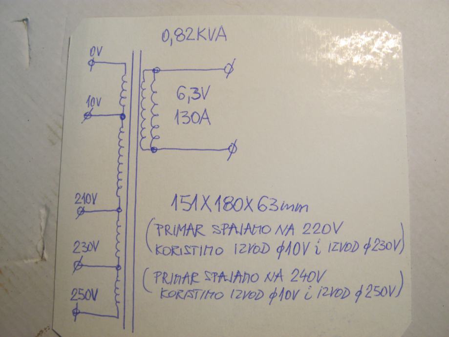TRANSFORMATOR 6.3V130A / 820VA POGODAN ZA PUNKT APARAT (OSIJEK)
