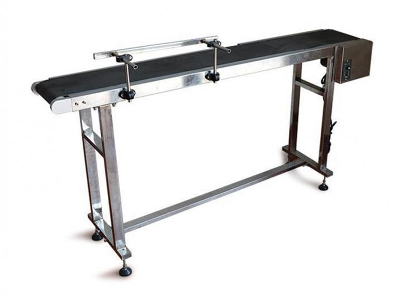 Standardna pvc transportna traka dužine 150 cm, širine 20 cm i visine 75 - 80 cm, sa podesivim uzdužnim graničnicima za usmeravanje proizvoda, sa kojima se reguliše širina trake i do 30 cm.