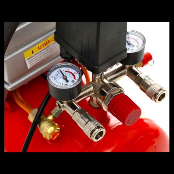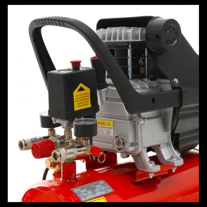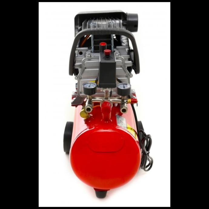 kompresor komprimiranog zraka jedan je od najvećih pomoćnika u radionici i autoservisukoristi se u raznim pneumatskim i ličilačkim radovima, jer je pogodan za razne pneumatske alatetakođer se koristi za čišćenje, puhanje ili tlačenje drugih radnih strojevavisokokvalitetna izrada i široka rebra motora povećavaju učinak hlađenja motora što omogućuje dugotrajan i intenzivan radpovećani promjer sprječava taloženje prljavštineuljni kompresor sa spremnikom zapremine 24 litreTehnički podaci:broj klipova: 1promjer klipa: 51 mmsnaga motora: 2,8 kWusisna snaga: 206 l/mučinkovita snaga: 133 l/minglasnoća: 91 dBradni pritisak: 8 barazapremina spremnika: 24 lnapajanje: 220V / 50-60Hzpodmazivanje uljemrabljeno kompresorsko uljemotorni pogon: izravanvrsta motora: indukcijahlađenje zrakom2x manometar2x brza spojkazaštita od kratkog spojatežina: 19 kgdimenzije paketa: 61 x 56 x 28 cm]]>