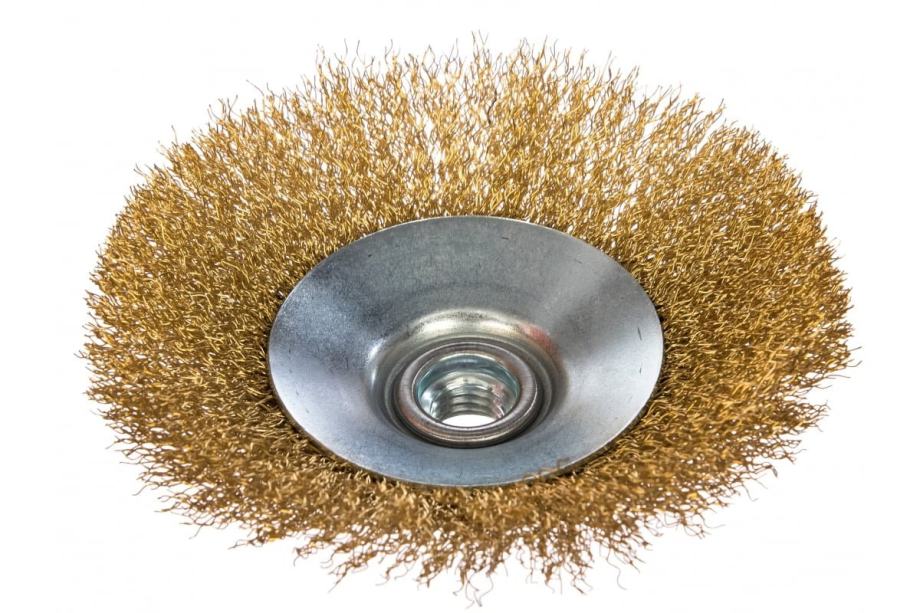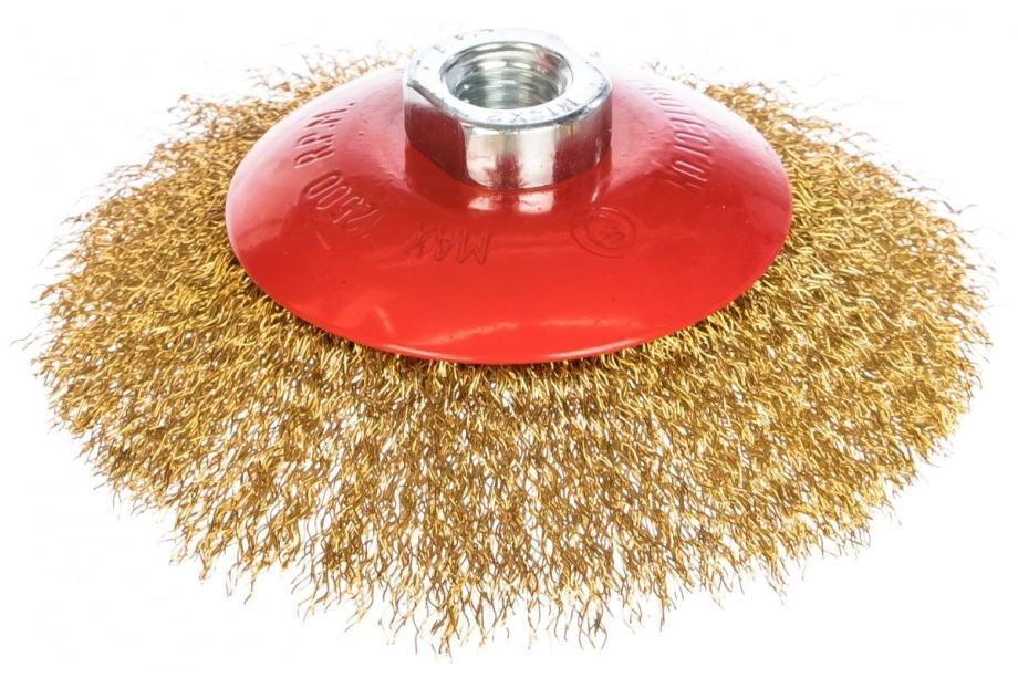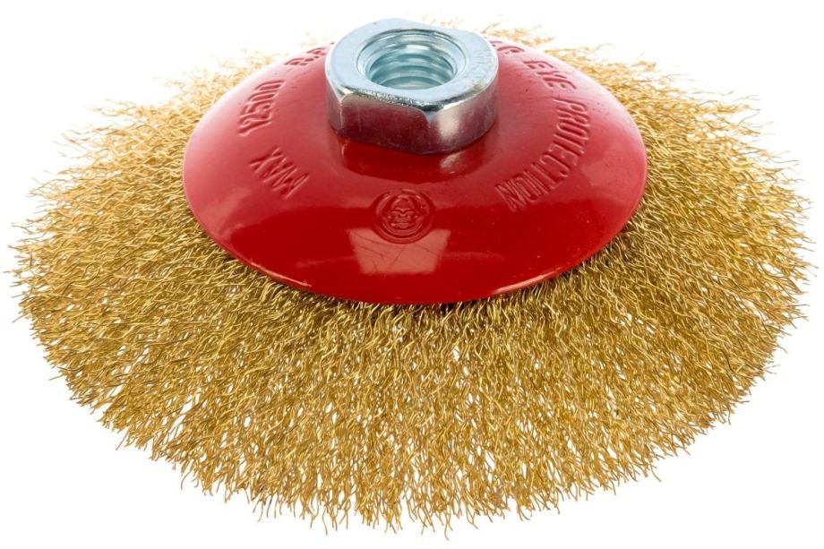 Ova univerzalna mesingana četkica promjera 125 mm ima gusto umotane i utvrđene žice od meda koje su idealne za uklanjanje smeđih, boja i školjki s metalnih površina. Nit M14 omogućuje vam se povezivanje s većinom brusilica za glodalice i kutne brusilice. Kompaktna verzija promjera 5 -inča omogućava upotrebu za uklanjanje oštrih rubova, poliranje i doradu u uskim prostorima.