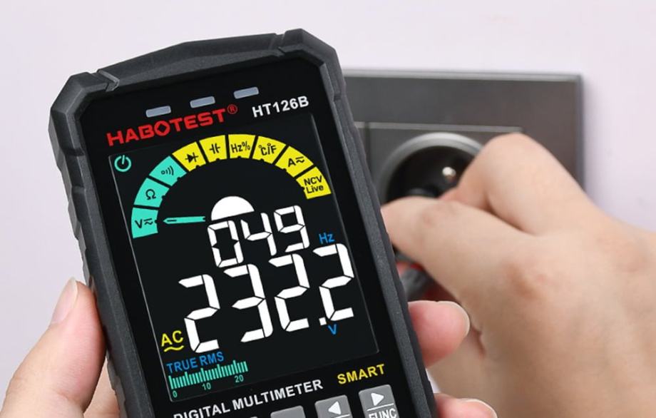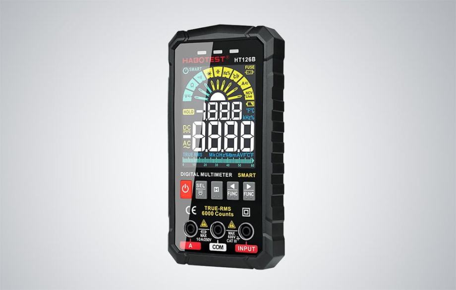 HT126B je pametan i robustan multimetar Habotesta. Budući da ga karakteriziraju precizna mjerenja, može se koristiti i na otvorenom. Opremljen velikim zaslonom u boji i silikonskim gumbima - upotreba je jednostavna i udobna. Kompaktan i lagan - također ima LED svjetiljku koja omogućuje rad u tamnim prostorima. Zahtijeva 4 baterije AAA 1.5 V (nisu uključene). Može se koristiti za mjerenje napetosti, otpora, kapaciteta itd.