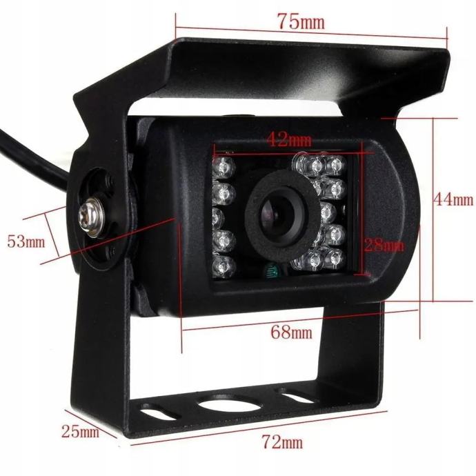 Komplet za kameru s parkiralištima za kamione, kamione, autobuse, traktore, kombiniraju i mnoge druge. IR senzor također olakšava parkiranje mrak! Zahvaljujući posljednjoj kameri, manevriranje uskih krivulja postaje lakše. Leća uređaja ima vidljivi kut do 140 stupnjeva, omogućavajući širok pogled na prostor vozila.