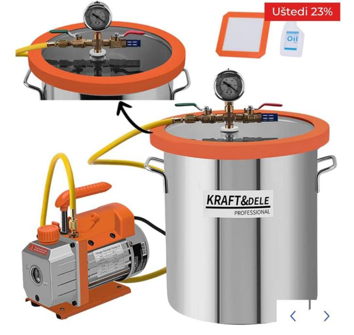 Kompletna vakumska pumpa s pripadajućom vakuumskom komorom, dizajnirana za brzo i učinkovito stvaranje vakuuma. S protokom zraka od 100 l/min i apsolutnim podtlakom od 5 Pa, pogodna je za laboratorije, servis klima-uređaja, tehničke radionice te za odzračivanje smola i silikona. Kompaktna konstrukcija i robusni materijali osiguravaju pouzdan rad i dugotrajnost.