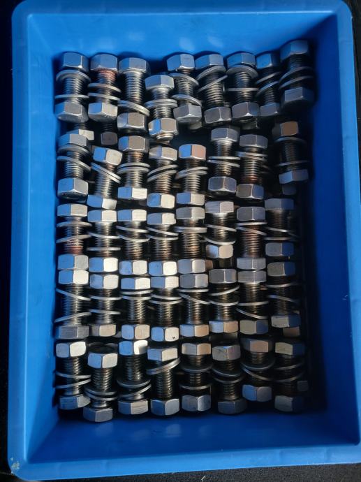 Inox vijci kao novi, koristeni za privremenu instalaciju nosaca. Vrh navoja premazan Weicon Anti-Seize pastom.
