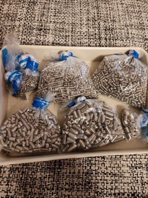 Prodajem 3kg uvrtnih vijaka od inoxa (oko 2600 komada)M3 M4 M5 M6 M8 M10 M12 raznih dužina,u većini je otvor za imbus. Cijena za komplet, a može dogovor.