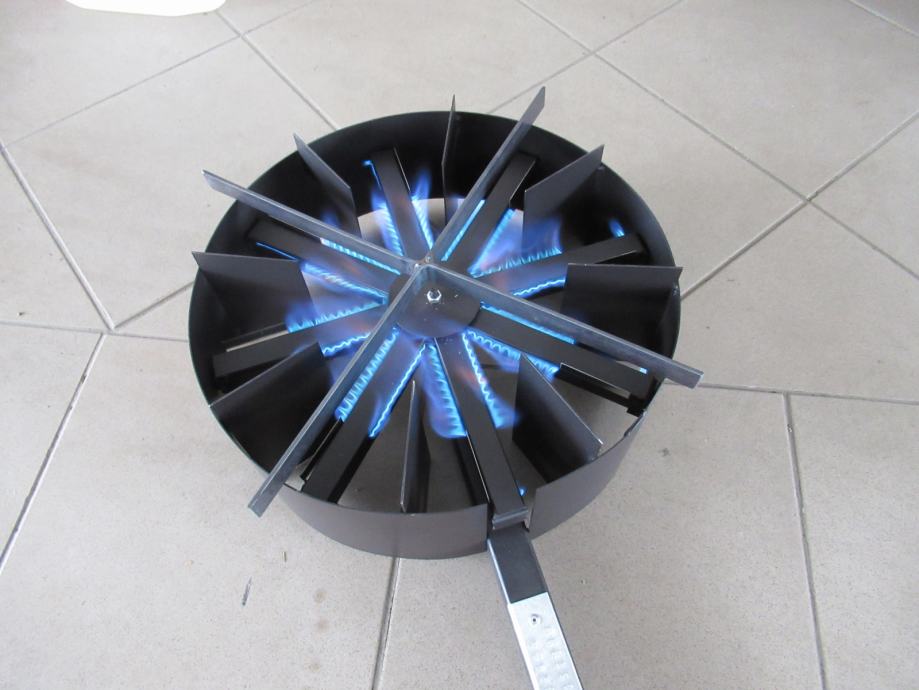 VIŠENAMJENSKI Plamenik kod koga je snaga ravnomjerno raširena na površinu kruga promjera 35 cm što ga čini idealnim za kuhanje u kotliću, kuhanje pekmeza ili pripremu ajvara, kuhanje većih količina mlijeka, pečenje lepinja i fritula,pečenje paprike. Ako na njega postavite čeličnu ploču dobijete odličan i jeftin roštilj Zbog osam vertikalnih limova između krakova plamenik izvanredno odoljeva i snažnom vjetru Nema potrebe za podešavanjem odnosa zraka i plina , nema BUM efekta, zbog robusne izvedbe sa lakoćom podnosi i teret veći od 100 kg Uz mali dodatak može se skratiti aktivna dužina svakog kraka za 50 mm i na taj način plamenik koristiti i za manje posude , Od nedavno umjesto čeličnog ugrađujem inox lim što znatno podiže kvalitetu proizvoda
