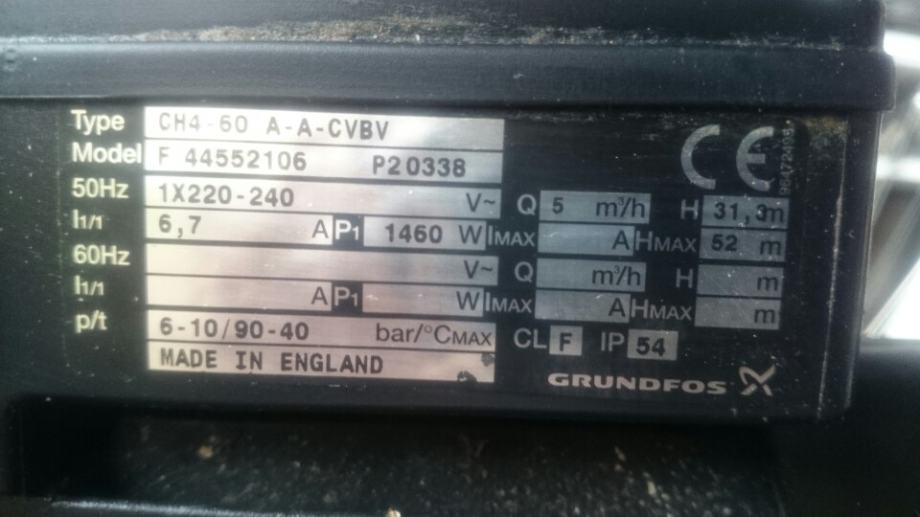 Prodajem jednofaznu vodenu pumpu tipa CH4-60 A-A-CVBV komplet u dijelovima.