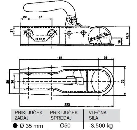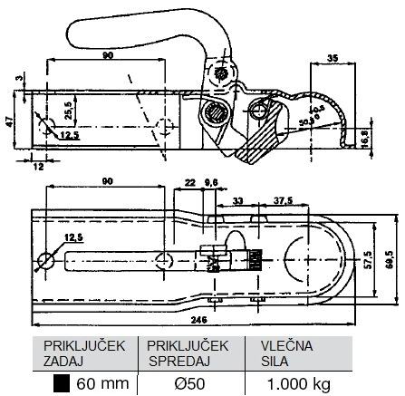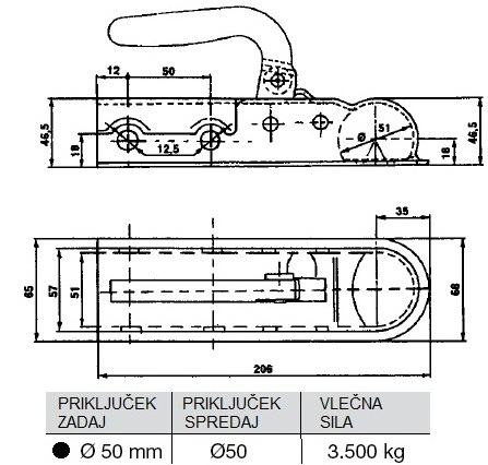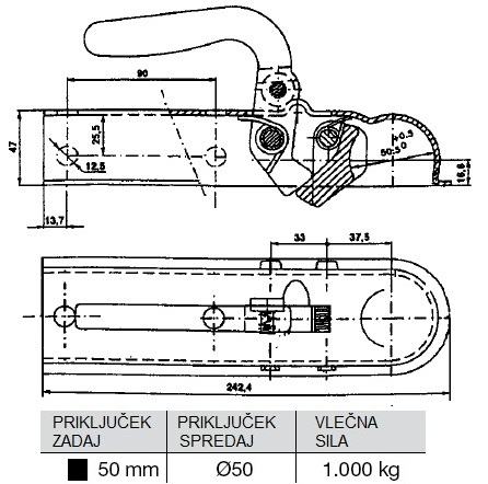 11070 - VUČNA KUKA ZA AVTO PRIKOLICU ŠILJASTA 50
