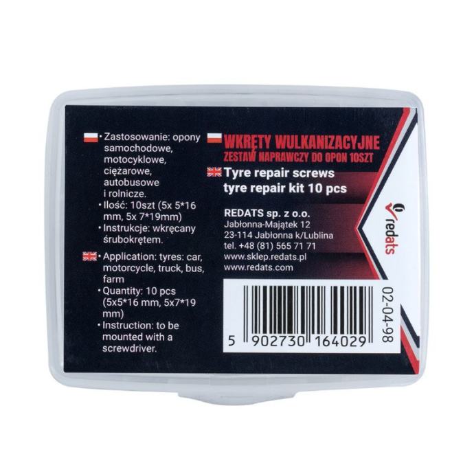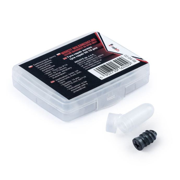 jednostavan popravak - jednostavno uvrnite vijak u oštećeno područje kako biste zatvorili rupu i zaustavili curenje zrakasigurno za gumu - neće izazvati daljnju štetu, idealno za hitne popravkeizdržljiva konstrukcija - vijak je izrađen od metala i gumeotporan je na oštećenja i visoke temperatureuniverzalna primjena - za gume automobila, kamiona, motocikala, bicikala i drugih vozilapraktično pakiranje - svaki vijak je premazan ljepilom i pakiran zasebno, u plastičnu posuduvijci su samo privremeno rješenjenisu zamjena za profesionalni popravakTehnički podaci: 5 x 16 mm - 5 kom7 x 19 mm - 5 kom]]>