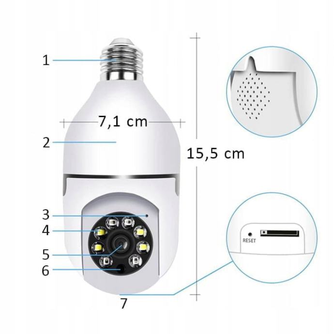 Uvođenje WiFi IP bežične 2MPX LED upravljačke kamere koja se rotira i ima E27 nit. Ova kamera olakšava kontrolu vašeg doma ili uredskog prostora, jer ima izgrađenu wifi vezu koja vam omogućuje pristup dalje od pametnog telefona ili tableta. Osim toga, kamera također ima lagano svjetlo. Ova je kamera prikladna za sve koji žele poboljšati sigurnost svog doma ili uredskog prostora.