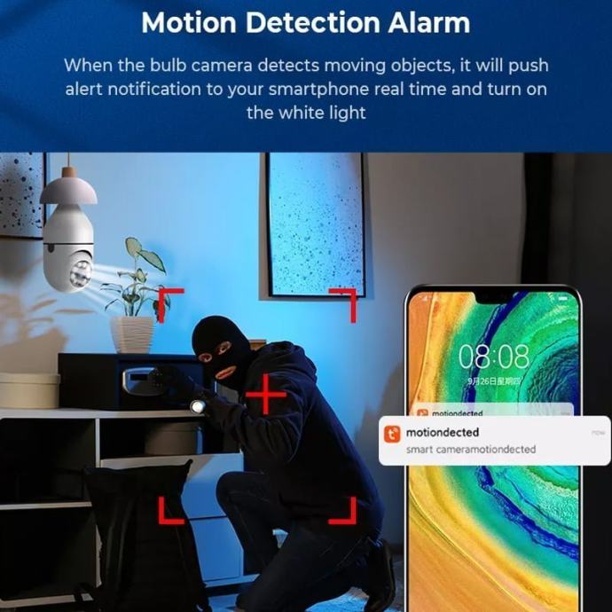 Zahvaljujući WiFi kameru u obliku svjetiljke, zaštitit ćete svoj dom kao nikad do sada. Zahvaljujući najnovijoj tehnologiji, bilo je moguće instalirati optiku u malu žarulju E27 niti (kompatibilno s većinom svjetiljki) koja snima sliku 2MPX. Uređaj upravljamo s razine aplikacije koju jednostavno preuzmete na svoj telefon. Od sada možete kontrolirati i događaje u svom domu kad odete na odmor!