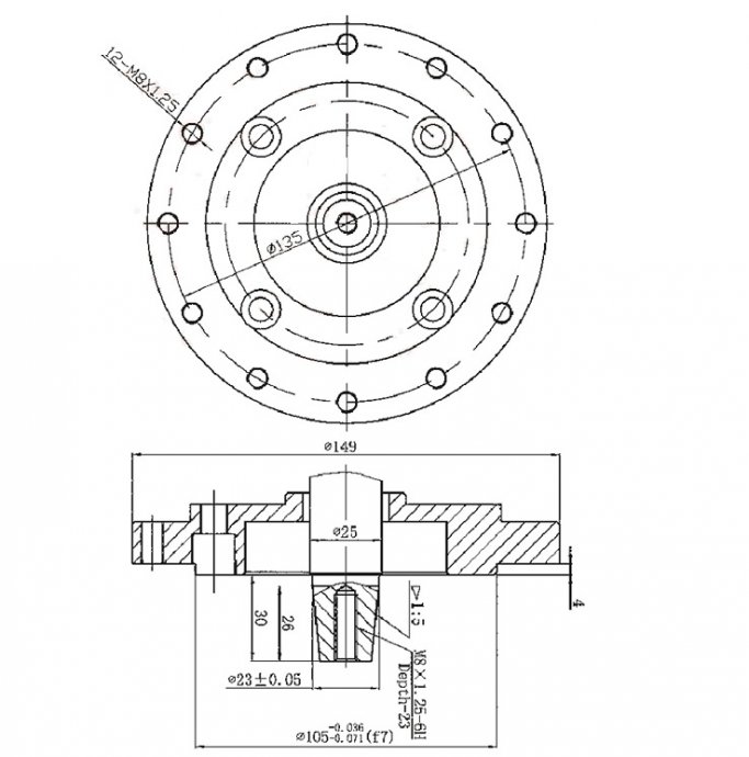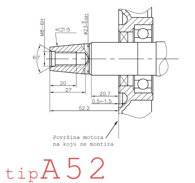 Jednostavna montaža zbog konusne radilice sa prirubnicom za jednostavan prihvat motora.