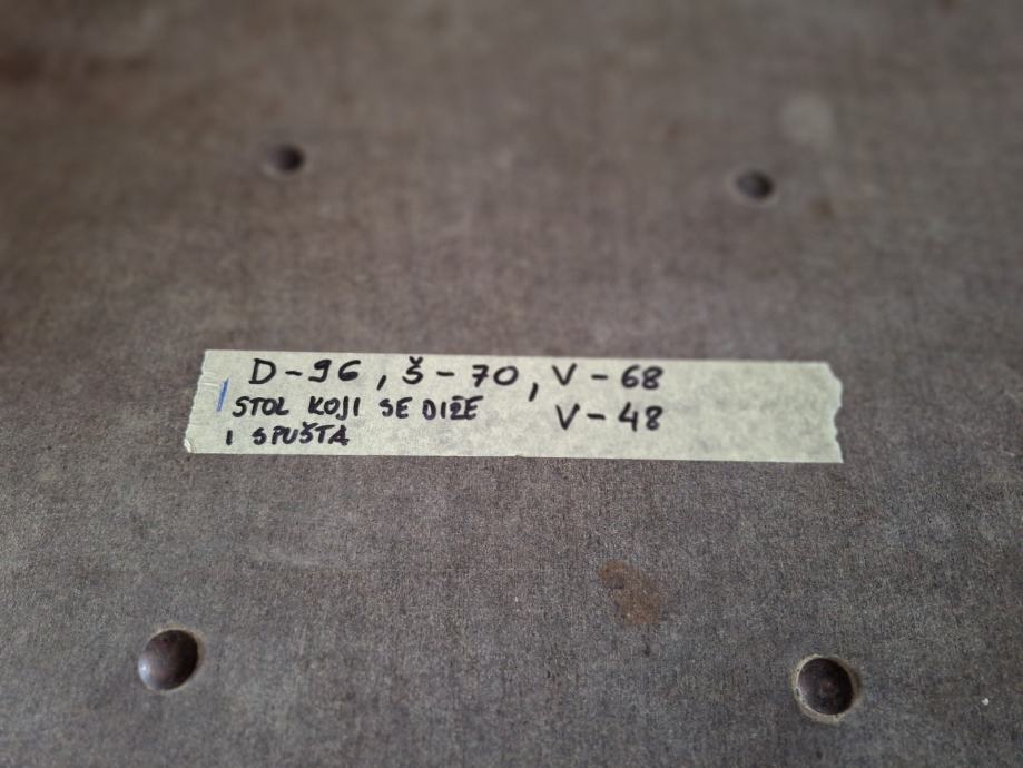Željezni stol dimenzije š 70,v 48-68 d 96cm,podesiva visina,stol se spušta i diže