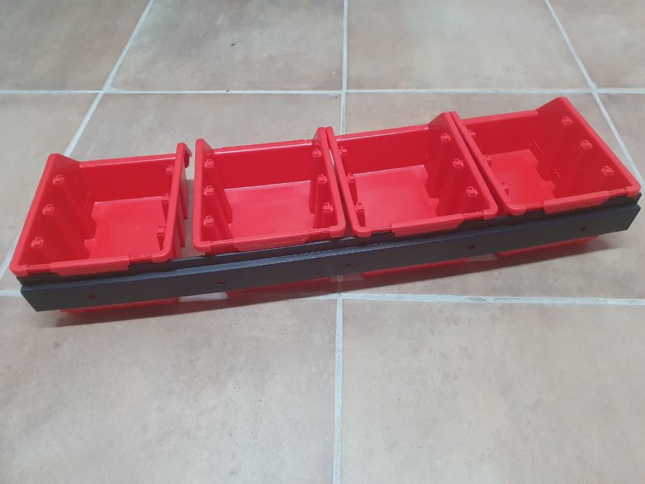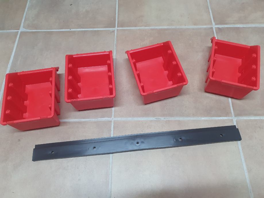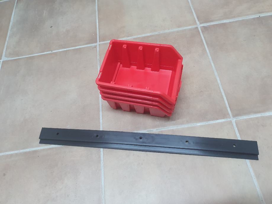 Novo i nikad korišteno. Odvojive i sklopive kutije za odlaganje izrađene su od polipropilena koji imaju visoku toplinsku stabilnost, visoka električna svojstva i otporan je na uobičajene kiseline i lužine, te druga organska otapala. Uz kutije ide i zidni nosač. Proizvođač LUX tools. Nosivost kutije je 1kg. Idealno za šerafe, matice i sitni pribor da se stvori red u garaži, radionici , podrumu, ostavi i slično.