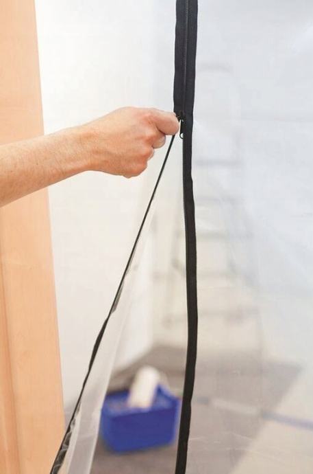 Unliking vrata s prikladnim prijelazom patentnih zatvarača. Savršeno rješenje za obnove. Prašina koja se javlja tijekom rada zadržava se u obnovljenom prostoru. Univerzalna veličina i vrpca omogućuju vam da brzo zapečate vrata. Čvrsti patentni zatvarač olakšava komunikaciju.