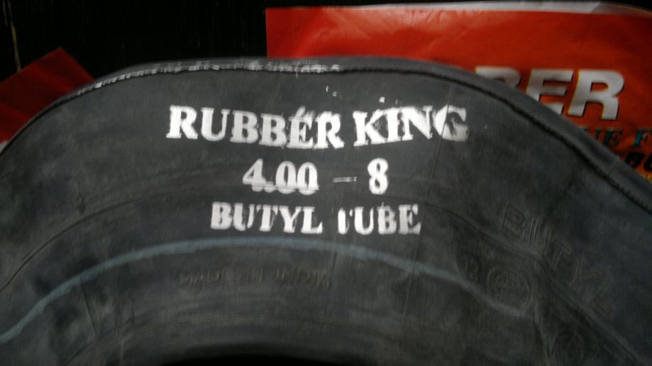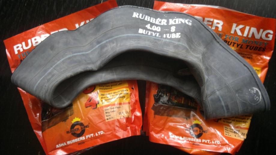 Dvije nove zračnice Rubber king, 4.00x8 sa ventilom TR13 za tačke. Istaknuta cijena je za jedan komad. Osobno preuzimanje u Varaždinu.