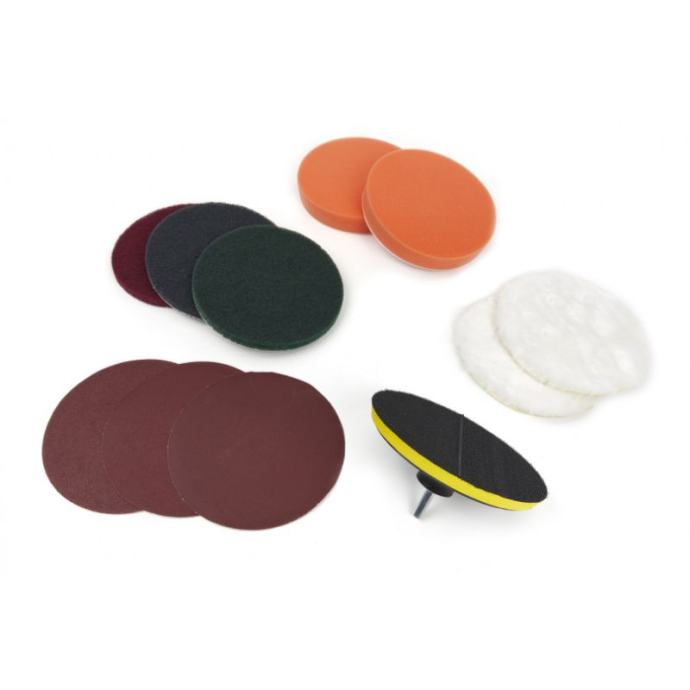 poliranje i brušenje su aktivnosti koje u mnogim slučajevima idu ruku pod rukuprvo se obradak brusi, a zatim polirabrušenjem uklanjate grube dijelove s površine, poliranjem činite površinu glatkom i sjajnomove aktivnosti mogu se izvrsno izvesti s HBM setom za poliranje i brušenje. Uz dovoljno dijelova u setu, dobivate prekrasno glatke izratkeset se sastoji od tri različite vrste brusnih diskova, tri različite vrste diskova za poliranje i dva jastučića za poliranje i spužve za poliranjediskovi za brušenje i diskovi za poliranje montirani su čičak trakom na isporučeni držačdržač je prihvata M14, ali može s adapterom na 6 mmdiskovi za brušenje i diskovi za poliranje mogu se koristiti na stroju za poliranje. Ovaj stroj za poliranje je naravno dostupan i u HBM-udiskovi za brušenje i poliranje imaju promjer od 150 mm, ali su dostupni i s promjerom od 180 mmTehnički opis:brusni diskovi: 1 x K80, 1 x K150 i 1 x K240kotači za poliranje: 1 x Gritt 400, 1 x Gritt 600 i 1 x Gritt 8002 x jastučić za poliranje2 x spužva za poliranje1 x čičak držač M141 x adapter od M14 do 6 mm za montažu]]>