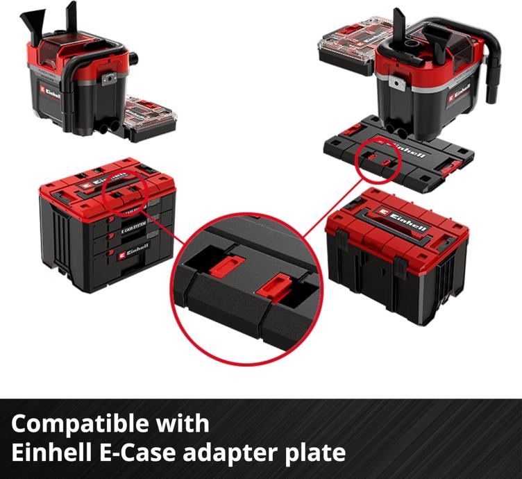 Einhell Professional akumulatorski mokro/suhi usisavač TP-VC 18/10 Li BL L-Solo lagan je, kompaktan i snažan alat namijenjen profesionalnoj i zahtjevnoj hobi upotrebi na gradilištima, u radionicama i za mobilno čišćenje bez kabela. Kao dio Power X-Change sustava koristi jednu 18 V bateriju, dok napredni brushless motor osigurava snažan usis, dulje vrijeme rada i dug vijek trajanja uz mogućnost ostvarivanja 10-godišnjeg jamstva na motor nakon online registracije. Usisavač je certificiran za prašinu klase L prema Euronormi te učinkovito filtrira štetne čestice poput gipsane prašine, vapna i pijeska, čime je prikladan za profesionalnu primjenu. Dva stupnja usisa omogućuju prilagodbu zadatku, pri čemu ECO način produžuje autonomiju baterije, a BOOST način osigurava maksimalnu snagu usisa do 180 mbar. Spremnik zapremine 10 litara s navojnim čepovima omogućuje brzo i jednostavno pražnjenje, dok funkcija puhanja olakšava čišćenje teško dostupnih mjesta ili napuhavanje madraca i sličnih proizvoda. Kompatibilnost s Einhell E-Case sustavom omogućuje jednostavan transport i integraciju u modularni sustav kutija, a praktični držači za pribor i crijevo osiguravaju uredno skladištenje dodataka. Uređaj se isporučuje bez baterije i punjača. Solo model – isporučuje se bez akumulatora i punjača