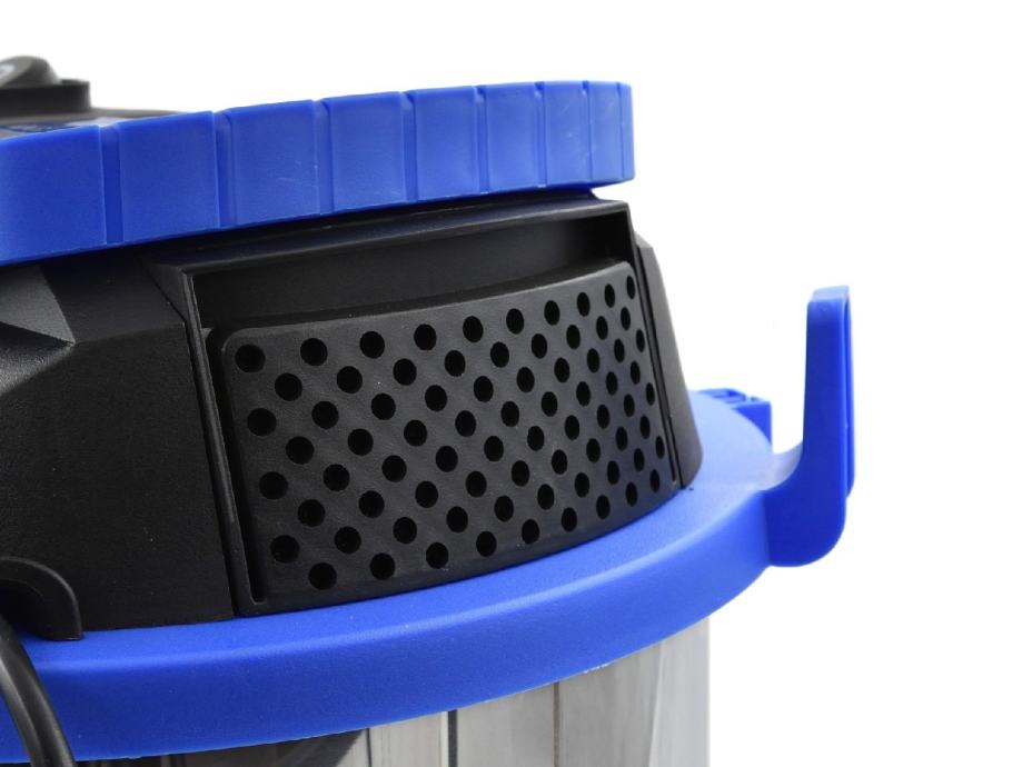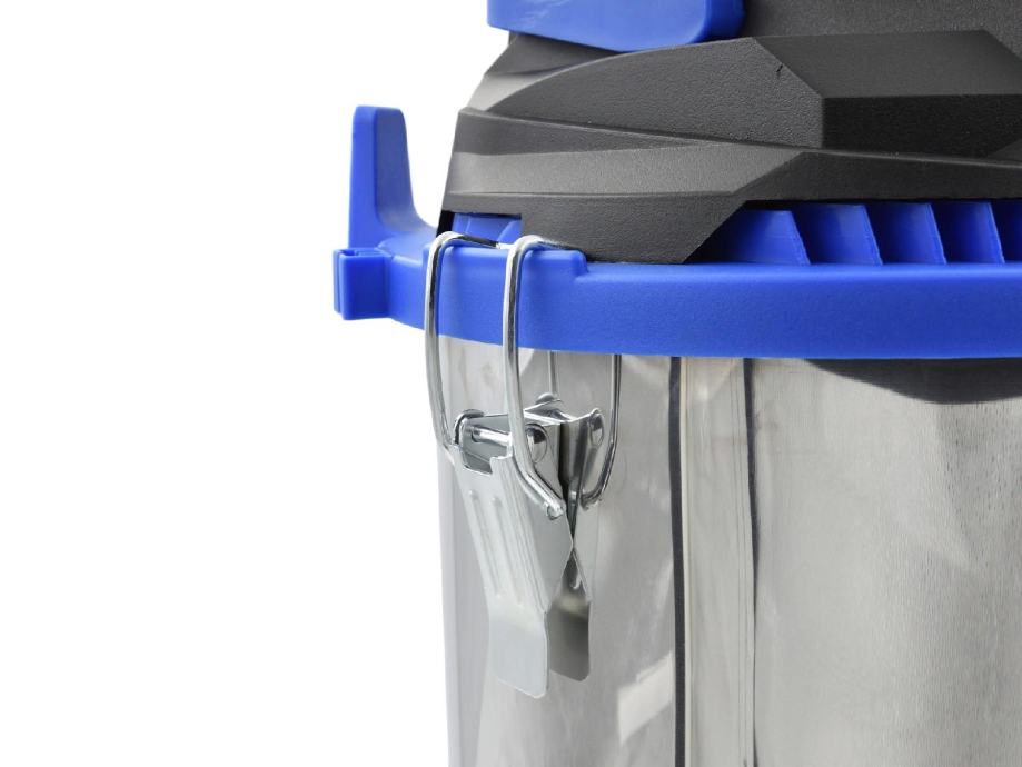 Spremnik od 30l izrađen je od nehrđajućeg čelika. Dodatna funkcija usisavača je puhalo koje omogućuje npr. otpuhivanje prljavštine s teško dostupnih mjesta. Usisavač je opremljen s 4 okretna kotača koji omogućuju jednostavno kretanje s uređajem.