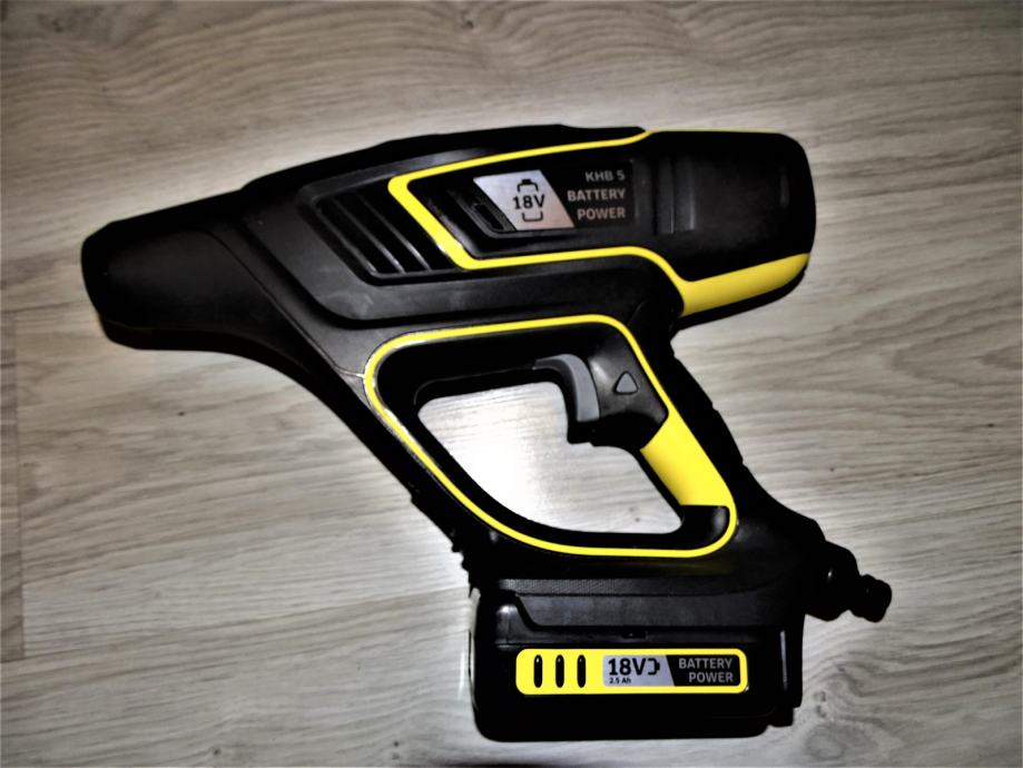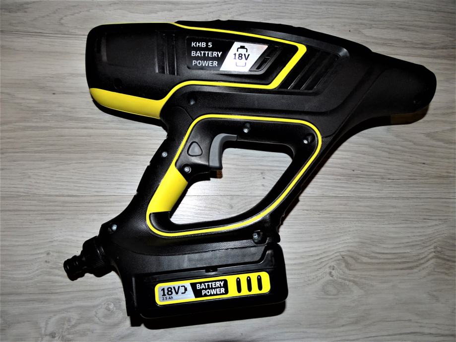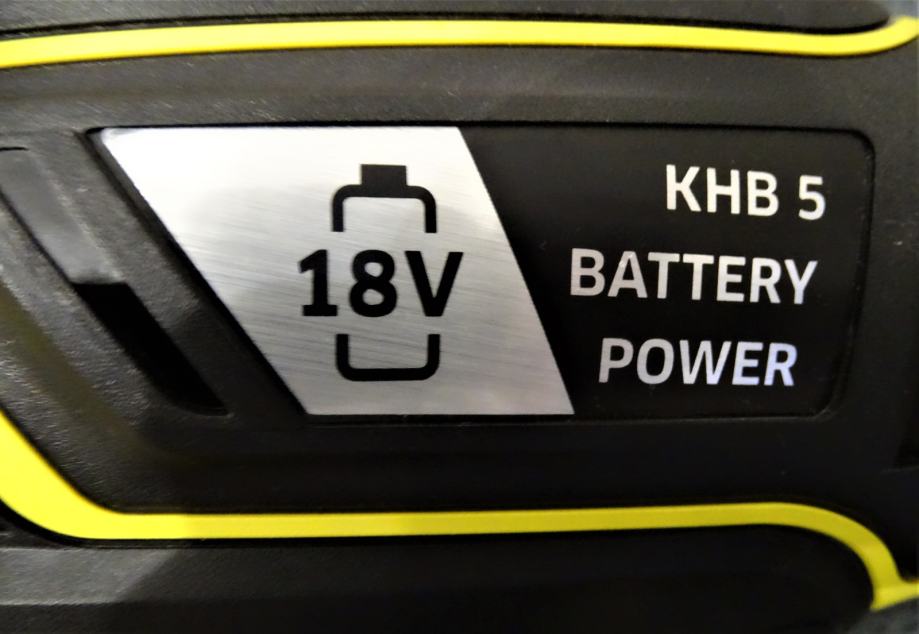 KHB 5 Battery je vrlo jednostavan za korištenje. Opremljen je s izmjenjivom 18-voltnom baterijom (maksimalno trajanje 10 minuta), jednostavnom za uporabu i može se koristiti za mnoge aktivnosti. Potpuno je neovisan o električnoj energiji. Preostali vijek trajanja baterije prikazan je na odgovarajućem zaslonu "Real Time Management". KHB 5 je dizajniran za brzo čišćenje namještaja i vrtnih alata, bicikala i raznih predmeta izvan kuće. Kompaktnost uređaja te mjere za uštedu prostora omogućuju čišćenje u malim i uskim prostorima.