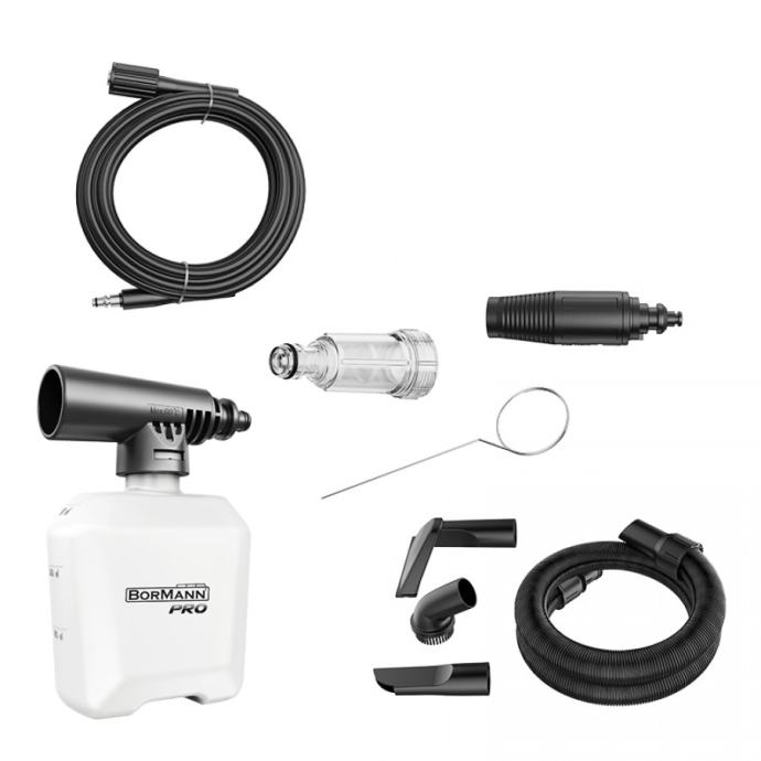 Bormann BPW3130 PRO je svestran perač i usisivač za mokro i suho čišćenje s snagom od 1600 W, maksimalnim tlakom od 130 bara i protokom vode od 480 l/h, idealan za kućne poslove poput pranja automobila, dvorišta i tepiha. Opremljen je teleskopskom ručkom, kotačićima, spremnikom za sapun i automatskim start-stop sustavom, s crijevom za vodu i napojnim kablom dužine 5 m. Usisivač snage 800 W s usisnom snagom od 16 kPa i protokom zraka od 1,4 m³/min pruža efikasno čišćenje uz kapacitet kante od 2 l. Uključuje funkciju puhanja, HEPA filter, trokutastu četku, ravnu mlaznicu i četku za namještaj. Duljina napojnog kabla je 5 m. Ovaj uređaj nudi visok performans i praktične značajke za razne potrebe čišćenja.