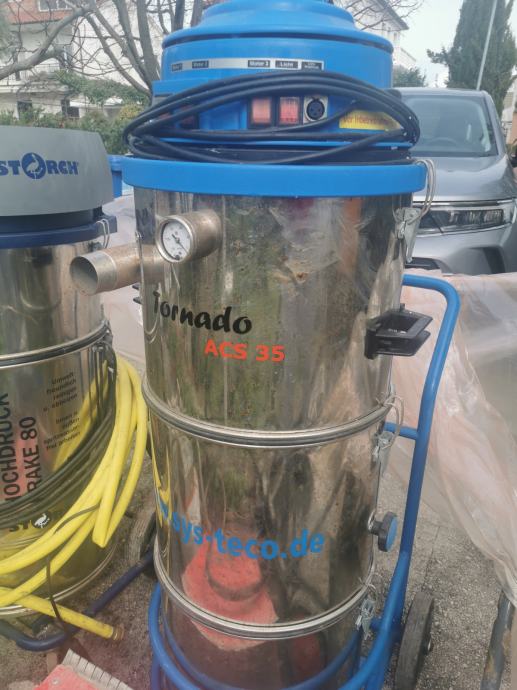 2. Tornado ACS - uređaj za ekološko čišćenje patentiranom ekološkom tehnologijom čišćenja i graviranja vakumskog pjeskarenja bez upotrebe visokog tlaka, vode ili kemikalija. Ekološka tehnologija uređaja za čišćenje Tornado ACS idealna je alternativa perilicama pod tlakom i pjeskarenju suhim ledom. Radi s finim abrazivima poput usitnjene orahove ljuske, drobljenog stakla i drugih drobljenih ekoloških materijala.