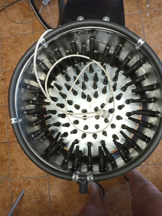Profi stroj za čišćenje peradi kapaciteta 40-50 kom/sat s 122kom gumenih čepova i motorom 0.50- 0.75 kW.Brzina vrtnje 240 okr/min za osiguranje najboljeg rezultata kod čišćenja svih vrsta peradi.