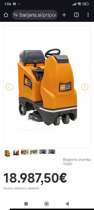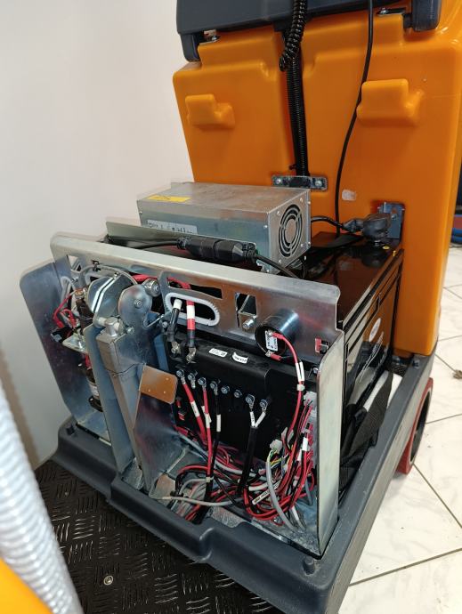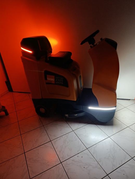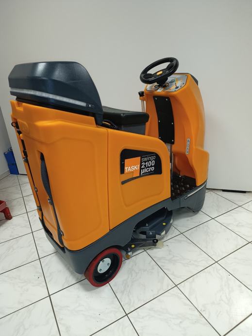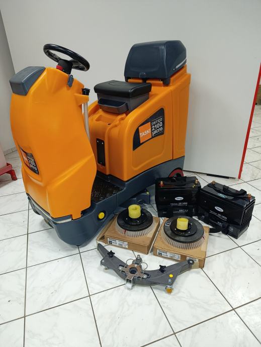 Taski Swingo 2100 – profesionalni stroj za pranje podova sa novim baterijama,novim četkama,novom usisnom granom sa novim usisnim gumama.Sve original TASKI.Stroj radi besprijekorno