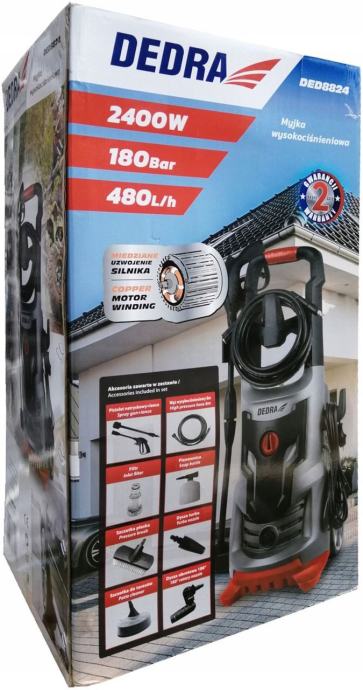 pištolj za prskanje kopljem s zamjenjivim vrhovima8m dugo fleksibilno crijevokabel za napajanje dug 5 mkuke na kućištu za spremanje kabela za napajanje i crijevasustav Auto-Stoprobusna ručkaveliki transportni kotačiTehnički podaci:napajanje: 230V, 50Hznazivna snaga motora: 2400Wradni tlak: 120 baramaksimalni radni tlak: 180 Barulazni tlak: 12 Barmaksimalni kapacitet: 480 L / hduljina crijeva za vodu: 8 mmaksimalna temperatura vode u cirkulaciji: 50 stupnjevamaksimalni protok vode: 6,5 L / minstupanj zaštite od izravnog pristupa: IPX5]]>
