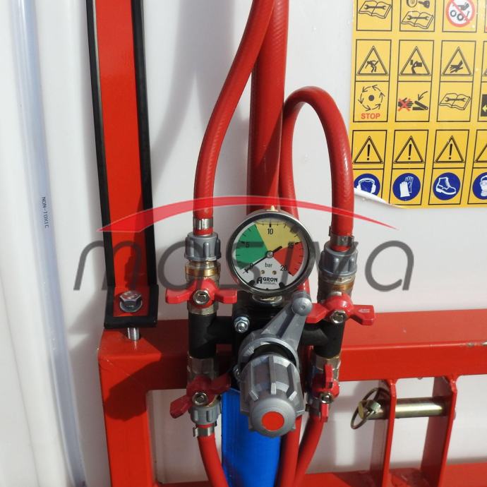 GARANCIJA: 3 godine garancije na priključak, 1 godina garancije na pumpu. TEHNIČKE KARAKTERISTIKE: PROIZVOĐAČ: AGRON MAG VRSTA: nošeni BROJ REZERVARA: 2 REZERVARA (glavni spremnik i spremnik za pranje ruku) KAPACITET GLAVNOG REZERVARA: 400 litara PUMPA: 75 l/min (proizvodnja KŽK, standardna vrtnja pumpe) VRSTA APLIKATORA: sa okruglim raspršivačem i usmjerivačima PROMJER OBRUČA RASPRŠIVAČA: 800 mm VELIČINA USMJERIVAČA: 135 cm BROJ DIZA: 12 kom MOGUĆA DODATNA OPREMA: pocinčana karoserija Atomizer ima CE certifikat. Uputstva za korištenje nalaze se uz atomizer. Prije upotrebe provjeriti pritisak zraka u zračnoj membrani i količinu ulja u pumpi. Obvezno ispustiti vodu iz atomizera prije zime. Prijaviti atomizer najkasnije 30 dana nakon izdavanja računa.