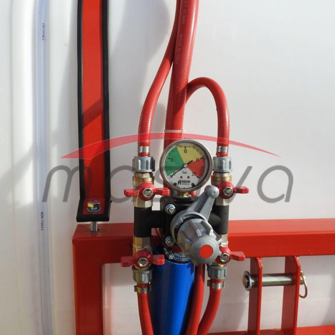 GARANCIJA: 3 godine garancije na priključak, 1 godina garancije na pumpu. TEHNIČKE KARAKTERISTIKE: PROIZVOĐAČ: AGRON MAG VRSTA: nošeni BROJ REZERVARA: 2 REZERVARA (glavni spremnik i spremnik za pranje ruku) KAPACITET GLAVNOG REZERVARA: 400 litara PUMPA: 75 l/min (proizvodnja KŽK, standardna vrtnja pumpe) VRSTA APLIKATORA: sa okruglim raspršivačem i usmjerivačima VELIČINA USMJERIVAČA: 175 cm PROMJER OBRUČA RASPRŠIVAČA: 800 mm BROJ DIZA: 14 kom MOGUĆA DODATNA OPREMA: pocinčana karoserija Atomizer ima CE certifikat. Uputstva za korištenje nalaze se uz atomizer. Prije upotrebe provjeriti pritisak zraka u zračnoj membrani i količinu ulja u pumpi. Obvezno ispustiti vodu iz atomizera prije zime. Prijaviti atomizer najkasnije 30 dana nakon izdavanja računa.