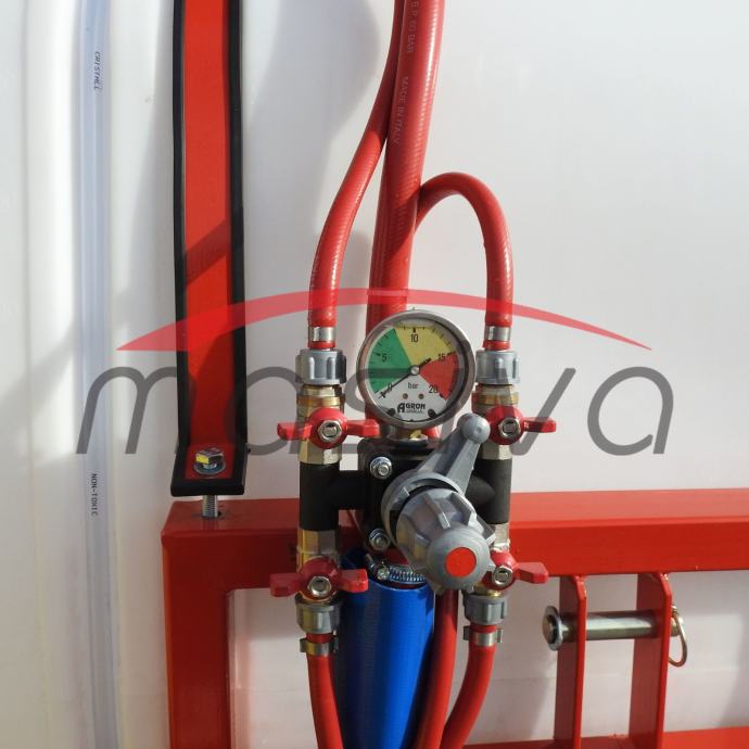 GARANCIJA: 3 godine garancije na priključak, 1 godina garancije na pumpu. TEHNIČKE KARAKTERISTIKE: PROIZVOĐAČ: AGRON MAG VRSTA: nošeni BROJ REZERVARA: 2 REZERVARA (glavni spremnik i spremnik za pranje ruku) KAPACITET GLAVNOG REZERVARA: 400 litara PUMPA: 75 l/min (proizvodnja UDOR, standardna vrtnja pumpe) VRSTA APLIKATORA: sa okruglim raspršivačem i usmjerivačima VELIČINA USMJERIVAČA: 170 cm PROMJER OBRUČA RASPRŠIVAČA: 800 mm BROJ DIZA: 14 kom (7 duplih sa svake strane) MOGUĆA DODATNA OPREMA: pocinčana karoserija Atomizer ima CE certifikat. Uputstva za korištenje nalaze se uz atomizer. Prije upotrebe provjeriti pritisak zraka u zračnoj membrani i količinu ulja u pumpi. Obvezno ispustiti vodu iz atomizera prije zime. Prijaviti atomizer najkasnije 30 dana nakon izdavanja računa.