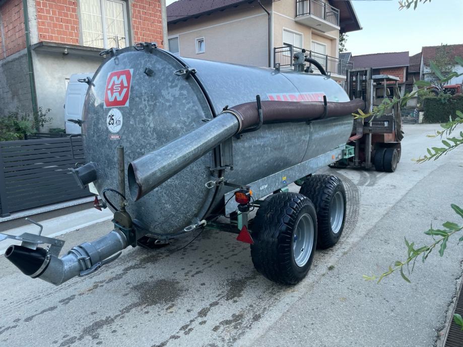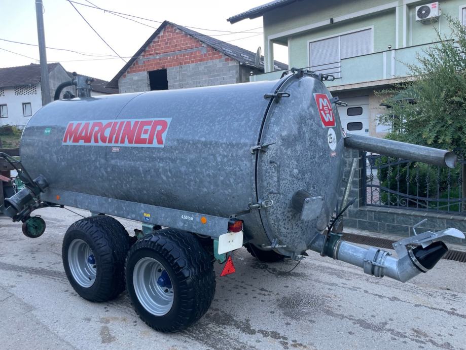 Cisterna Marchner 6000 lit otvorena i potpuno čista. Usisno crijevo, kardan i raspršivač u kompletu. Pumpa odlicna, gume prednje nove, zadnje na 80%.Naletna i rucna kocnica te signalizacija. Sve je ispravno i sprenmo za rad.
